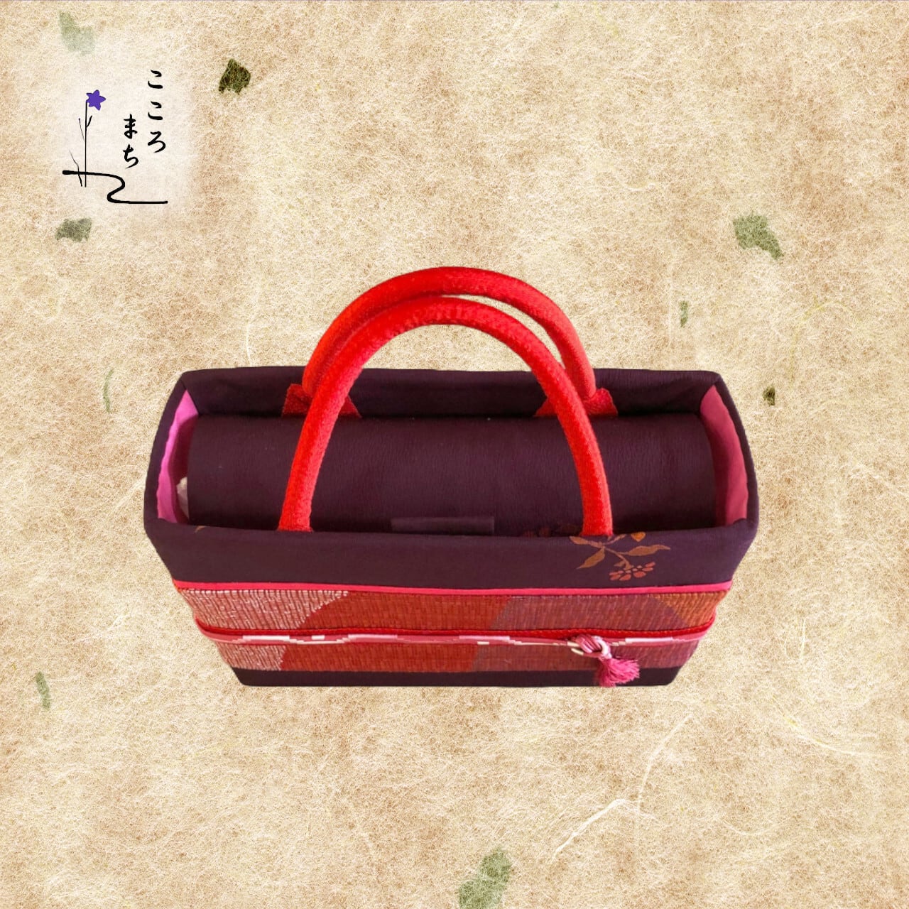 こころまち 飾りかばんは、伝統的な正絹や絹の着物を使用しリメイクしたバッグです。