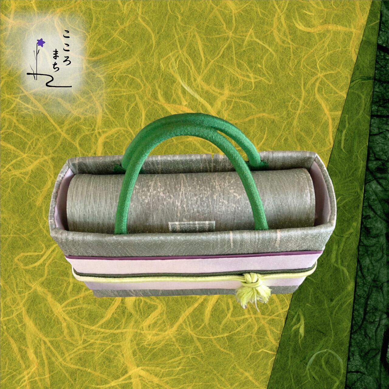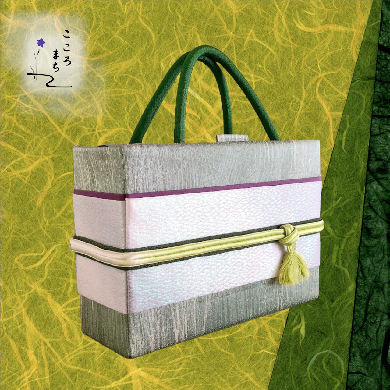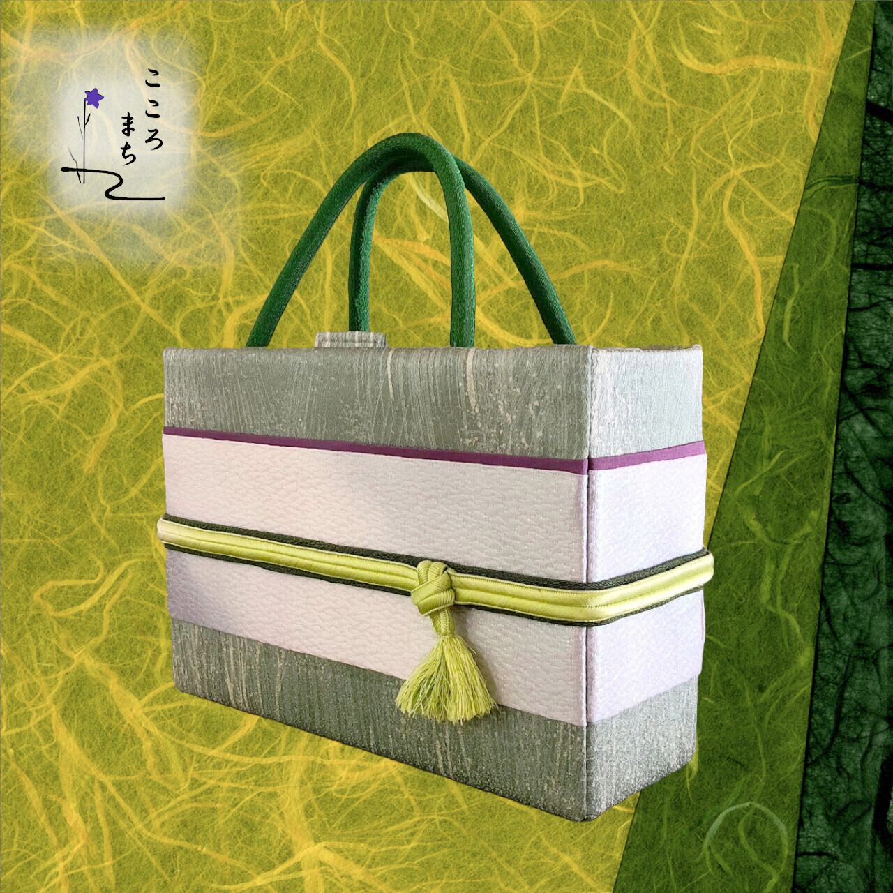こころまち 正絹飾りかばん・着物バッグ type-A NoAHA9 緑・銀