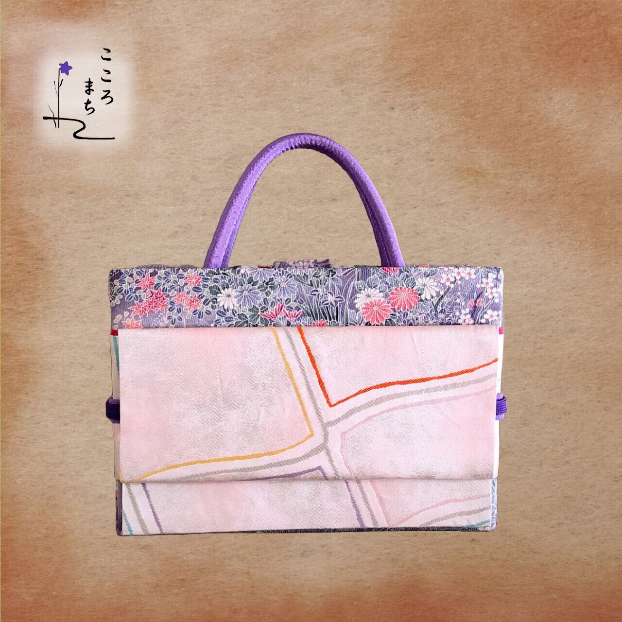 こころまち 正絹飾りかばん・着物バッグ 京友禅 type-A NoAHA14 紫・ピンク