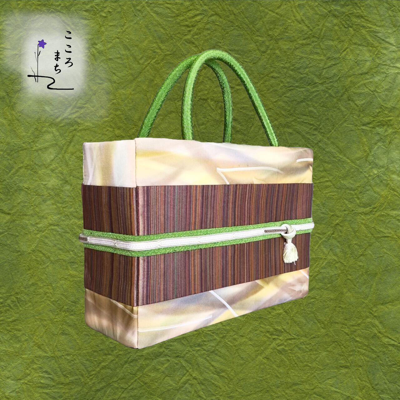 こころまち 飾りかばんは、伝統的な正絹や絹の着物を使用しリメイクしたバッグです。