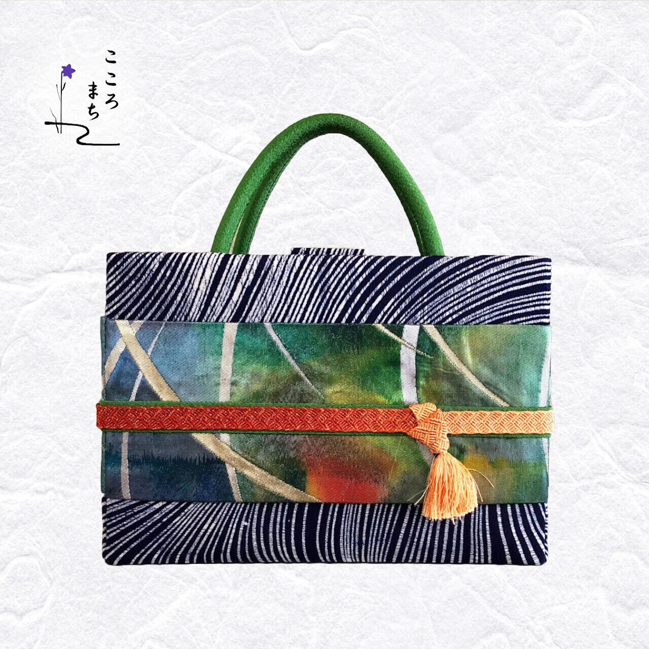 こころまち 正絹飾りかばん・着物バッグ type-A NoBBA38 青・緑