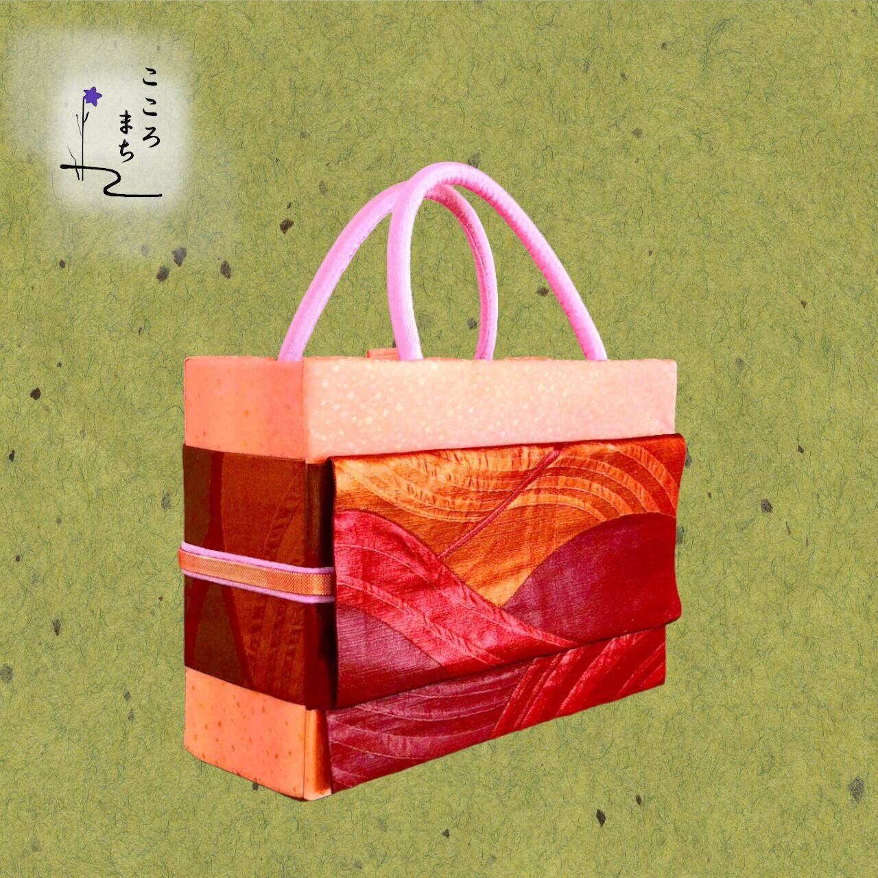 こころまち 飾りかばんは、伝統的な正絹や絹の着物を使用しリメイクしたバッグです。