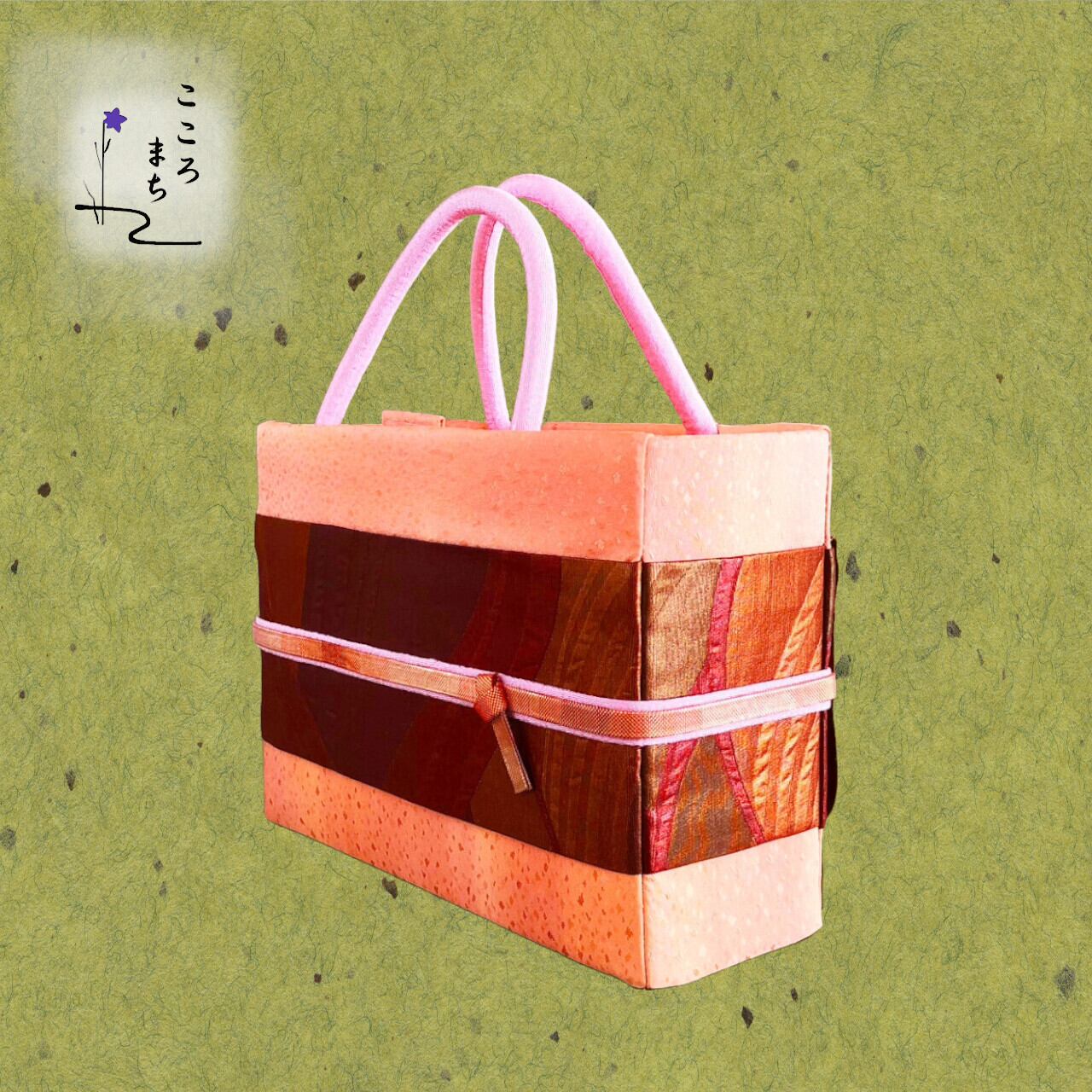 こころまち 正絹飾りかばん・着物バッグ type-A NoBCA52 ピンク・茶系