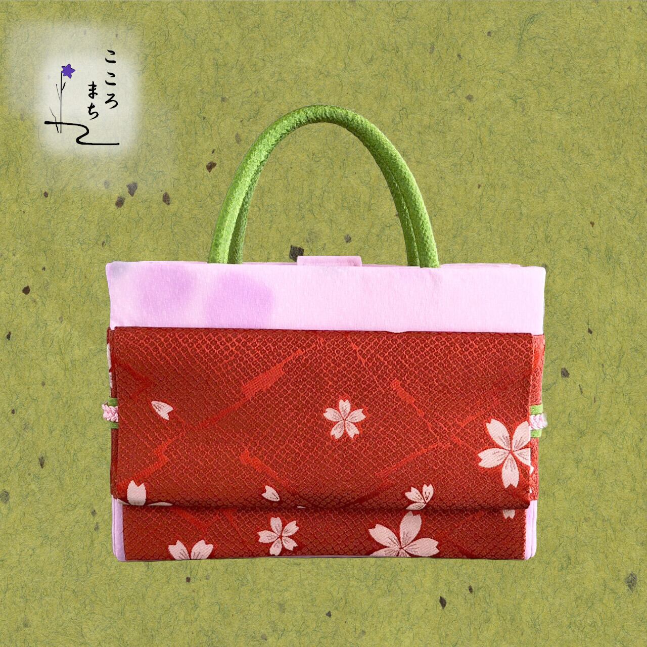 こころまち 正絹飾りかばん・着物バッグ 桜 type-A NoBDA58 ピンク・茶系