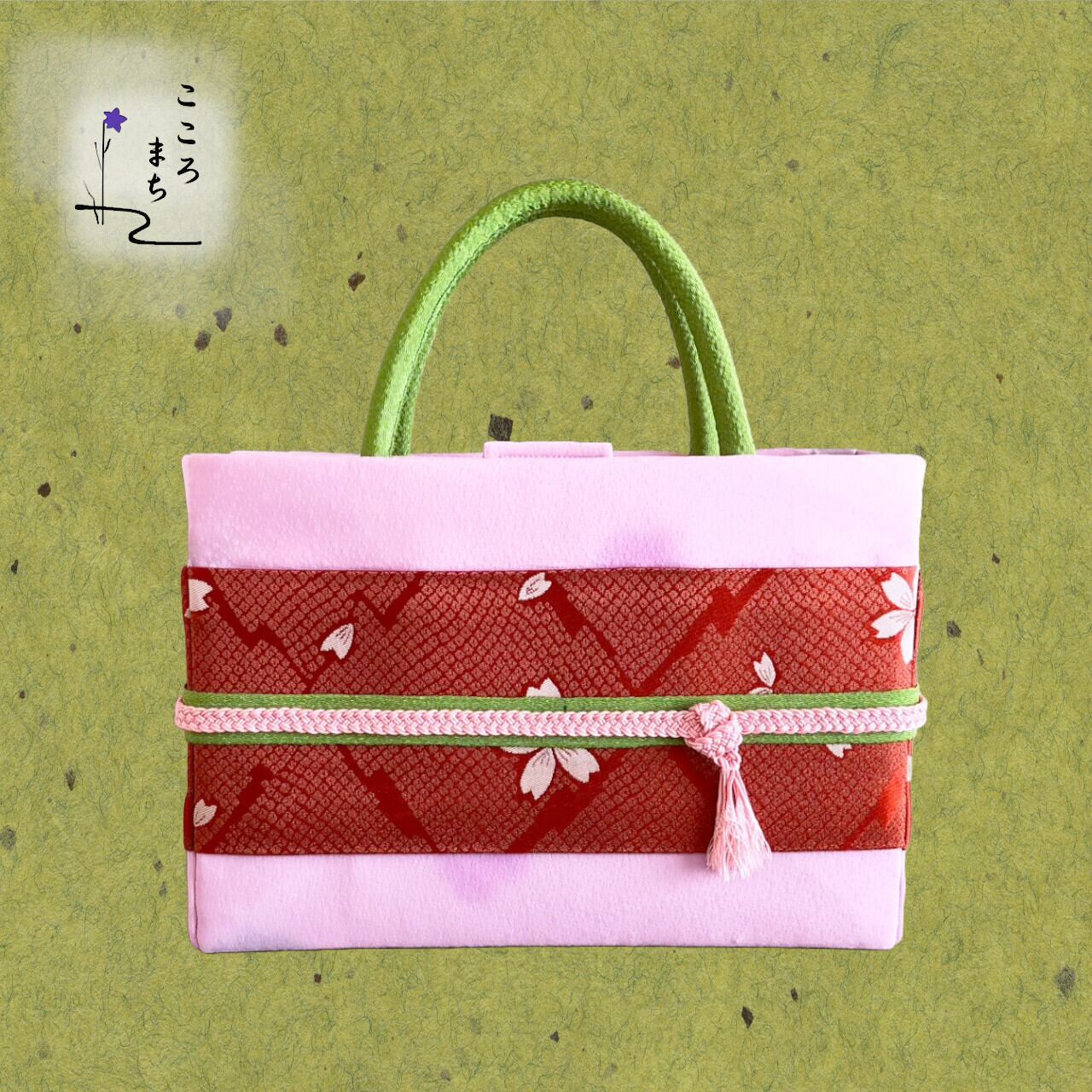 こころまち 飾りかばんは、伝統的な正絹や絹の着物を使用しリメイクしたバッグです。