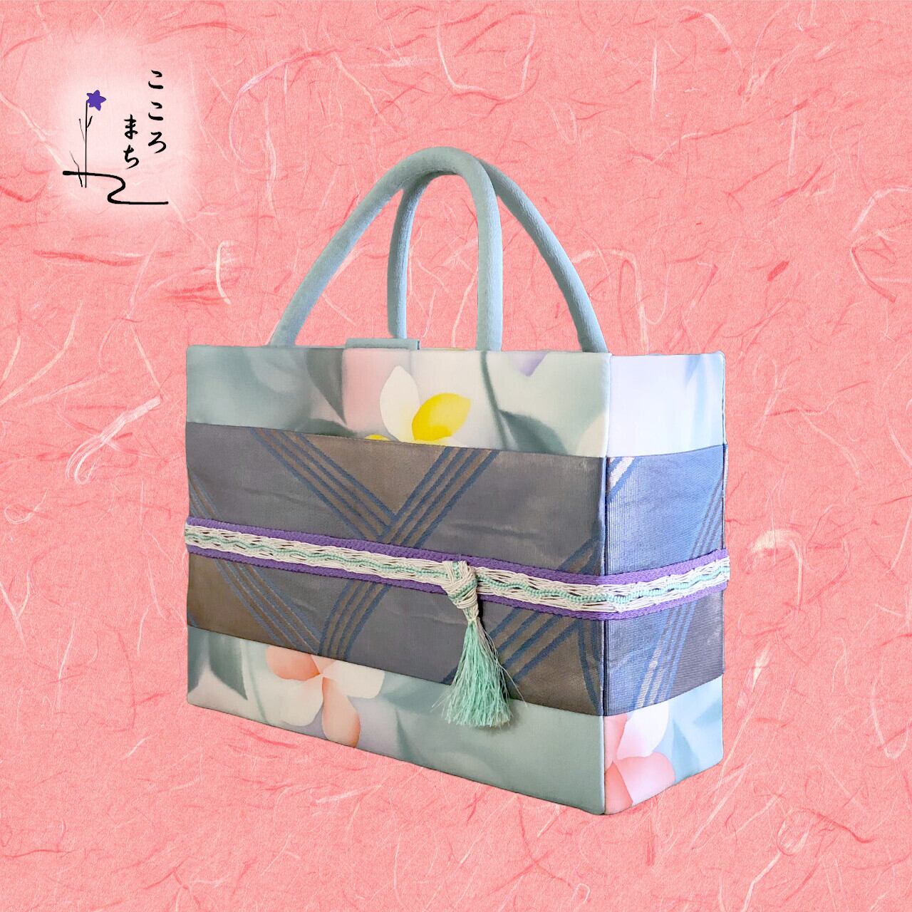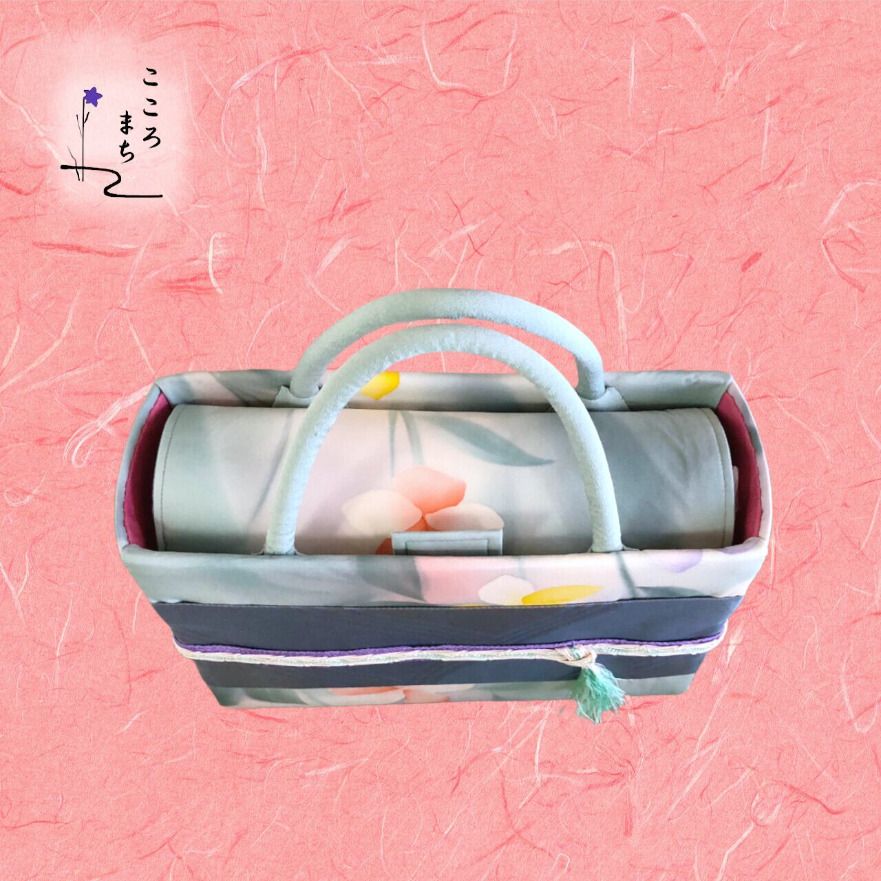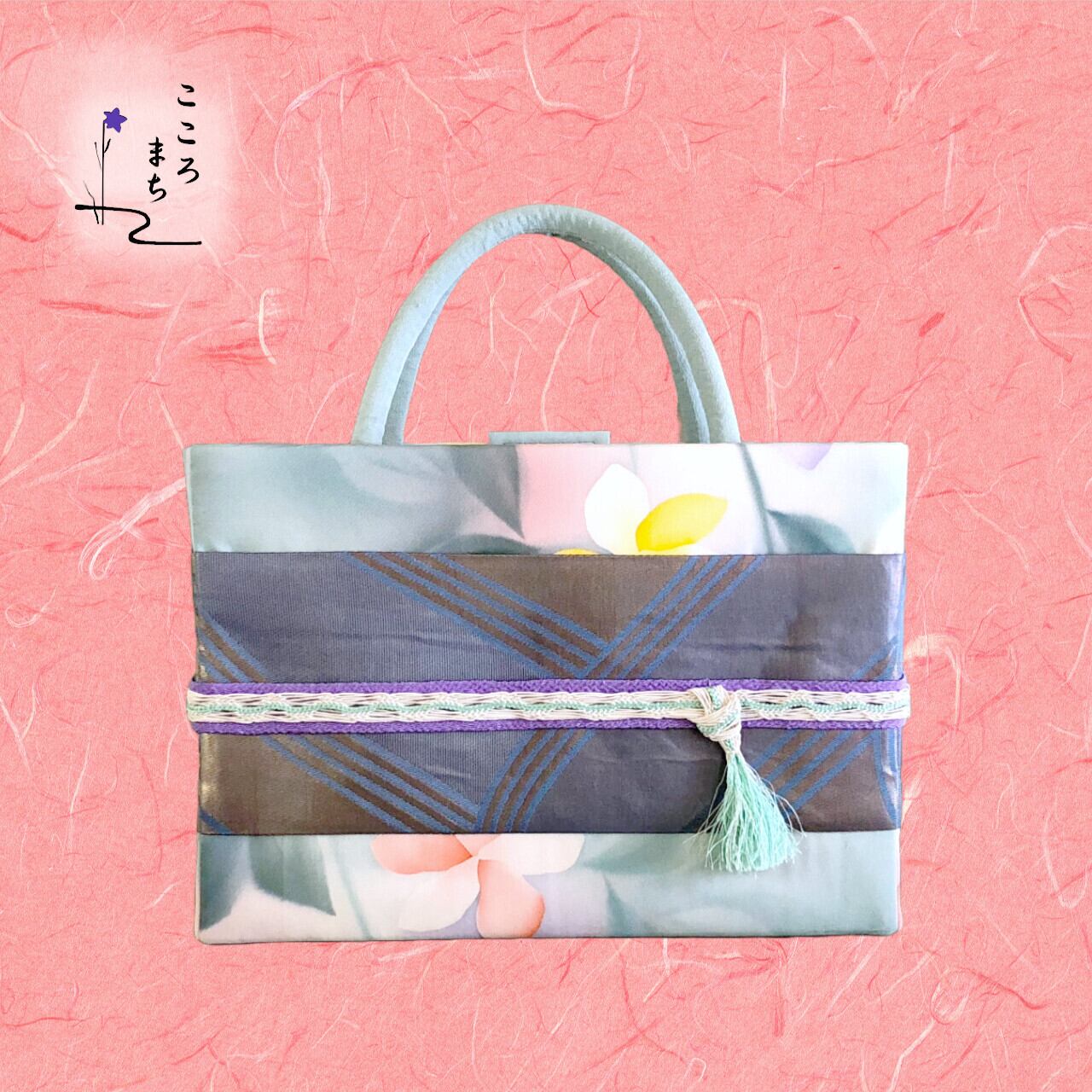 こころまち 飾りかばんは、伝統的な正絹や絹の着物を使用しリメイクしたバッグです。