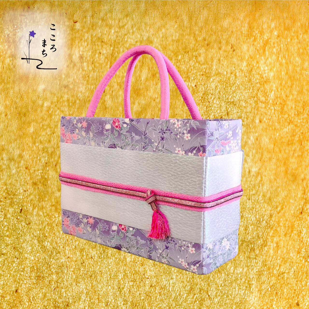 こころまち 飾りかばんは、伝統的な正絹や絹の着物を使用しリメイクしたバッグです。