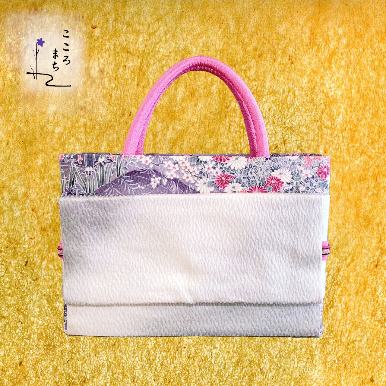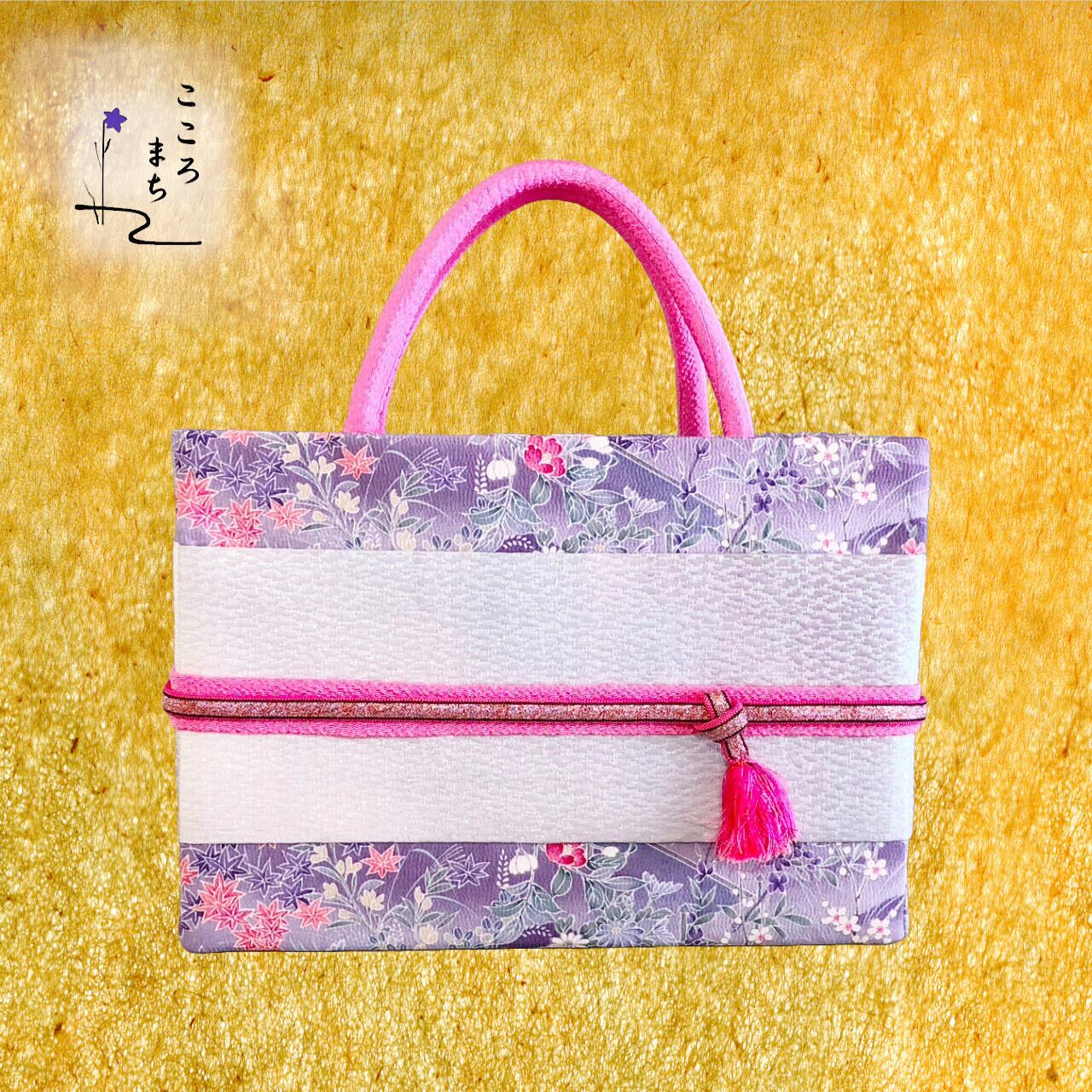 こころまち 正絹飾りかばん・着物バッグ 京友禅 type-A NoBBA39 紫・ピンク