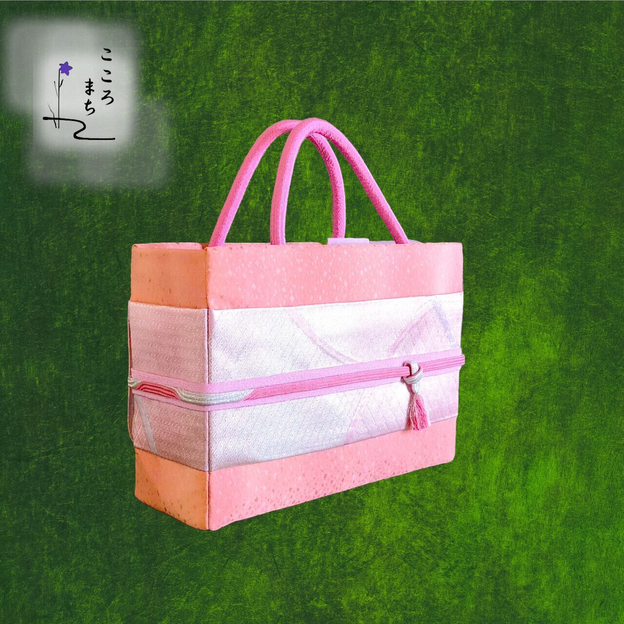 こころまち 飾りかばんは、伝統的な正絹や絹の着物を使用しリメイクしたバッグです。