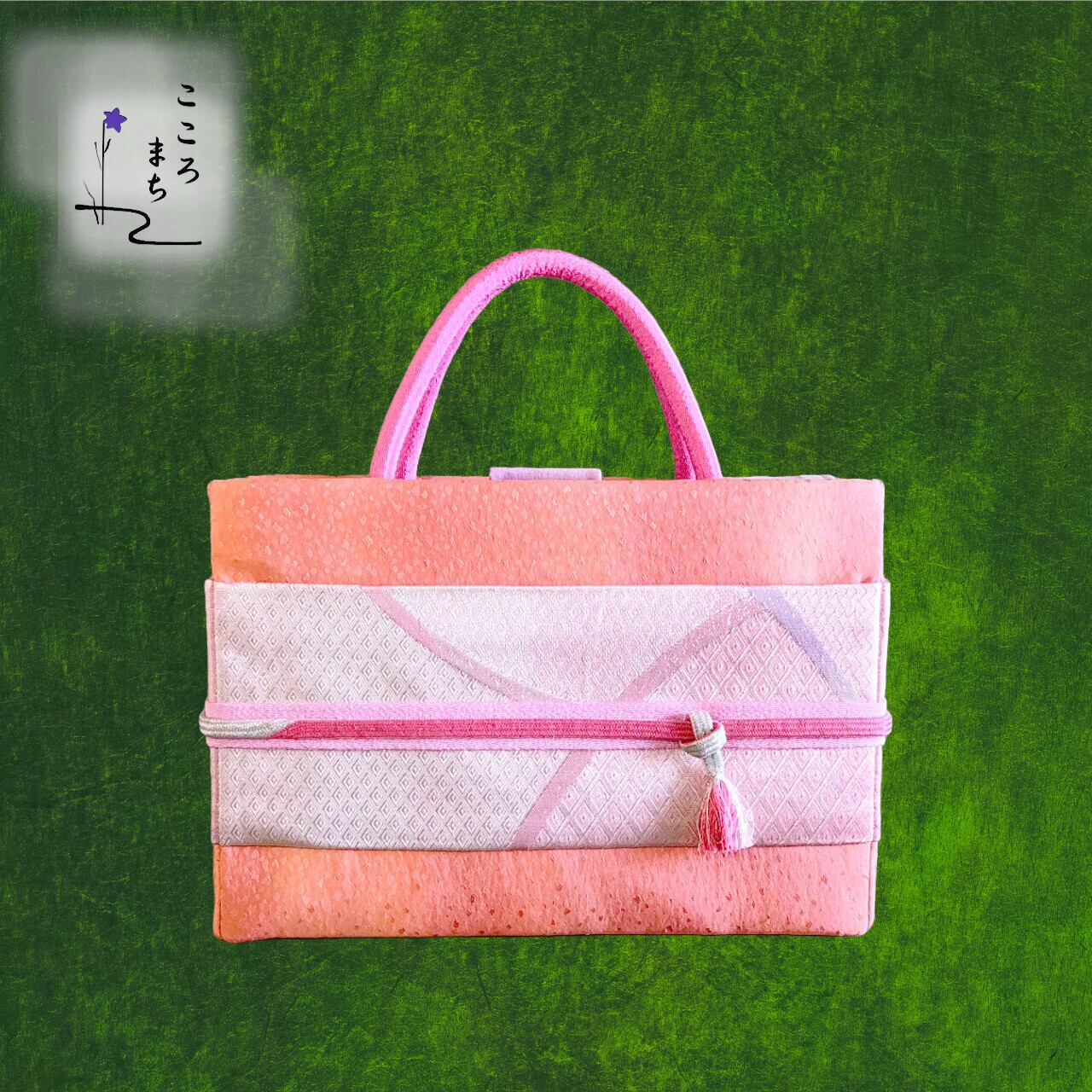 こころまち 正絹飾りかばん・着物バッグ コンビ type-A NoAGA6 ピンク