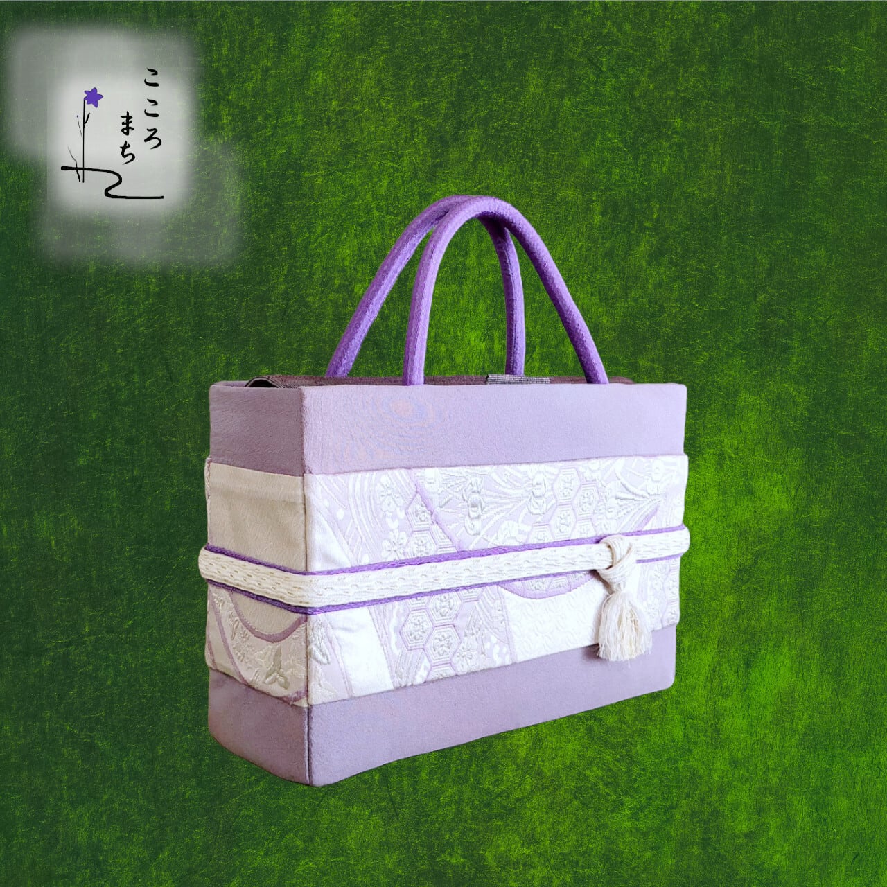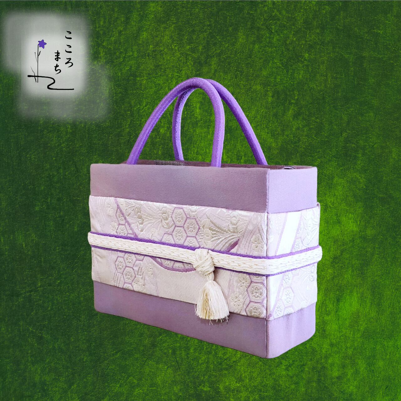 こころまち 正絹着飾りかばん・着物バッグ コンビ type-A NoAGA4 紫・白
