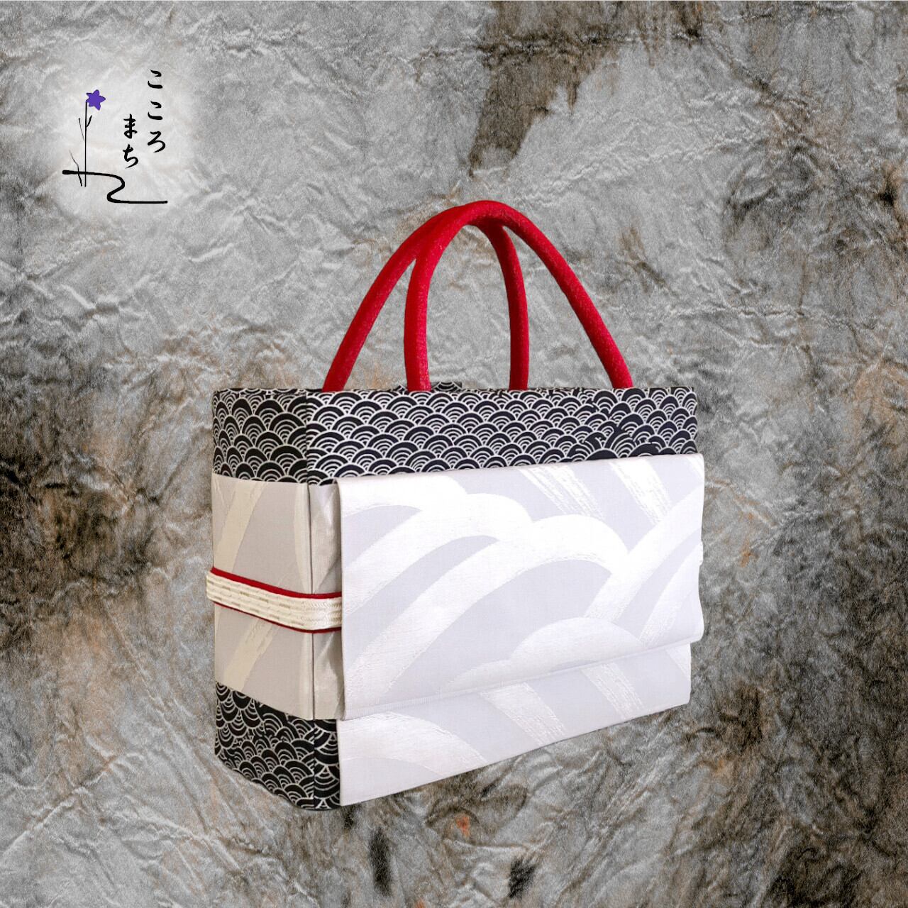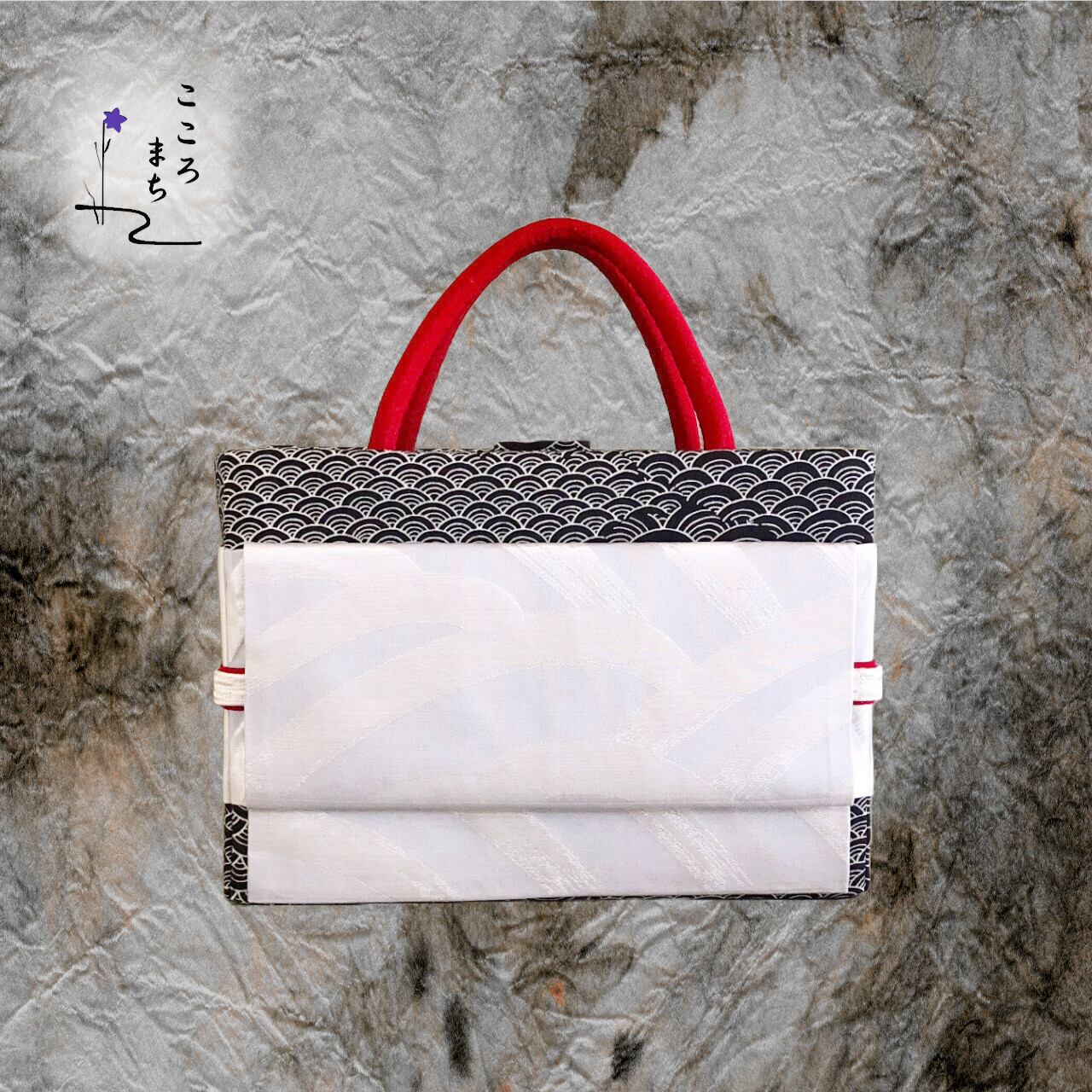 こころまち 正絹飾りかばん・着物バッグ type-A NoBFA62 黒・白