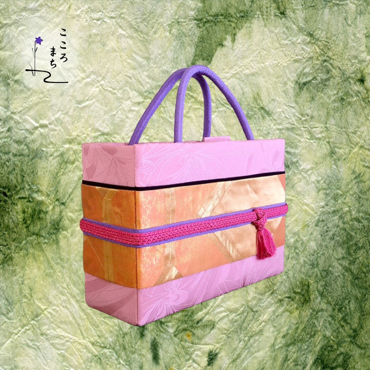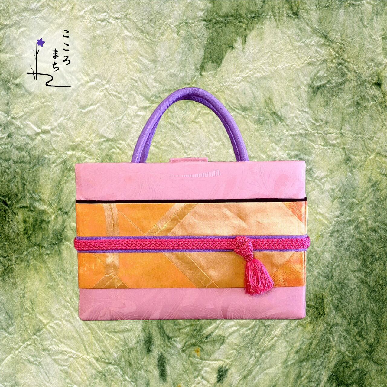 こころまち 正絹飾りかばん・着物バッグ type-A NoBDA57 ピンク・橙