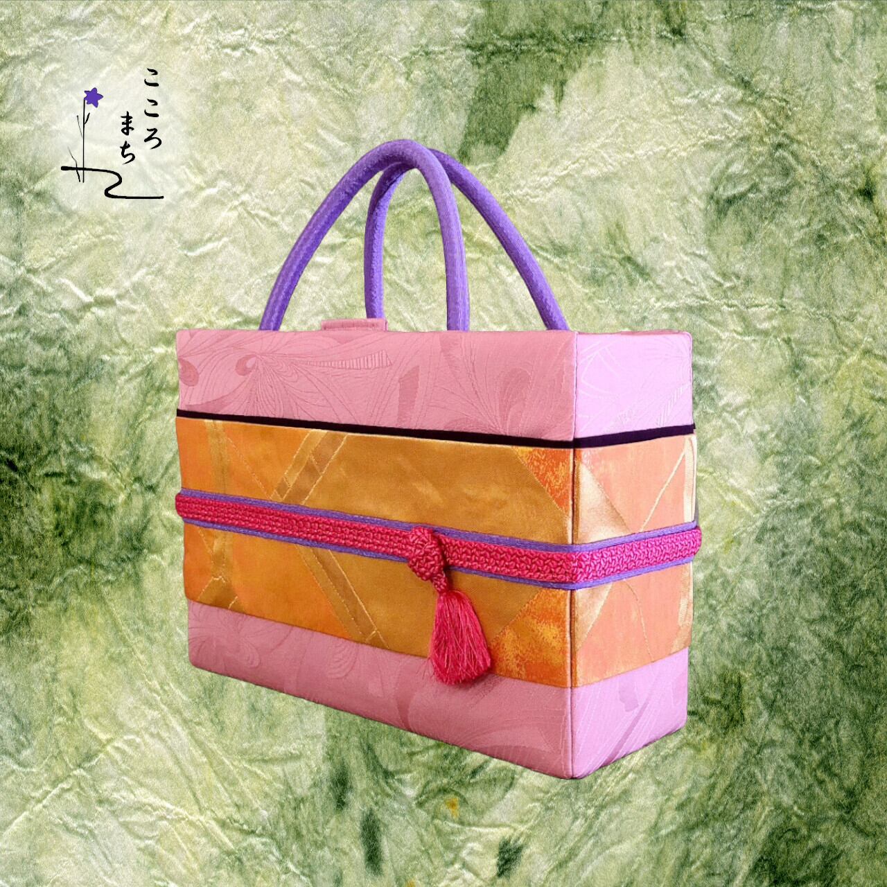 こころまち 飾りかばんは、伝統的な正絹や絹の着物を使用しリメイクしたバッグです。