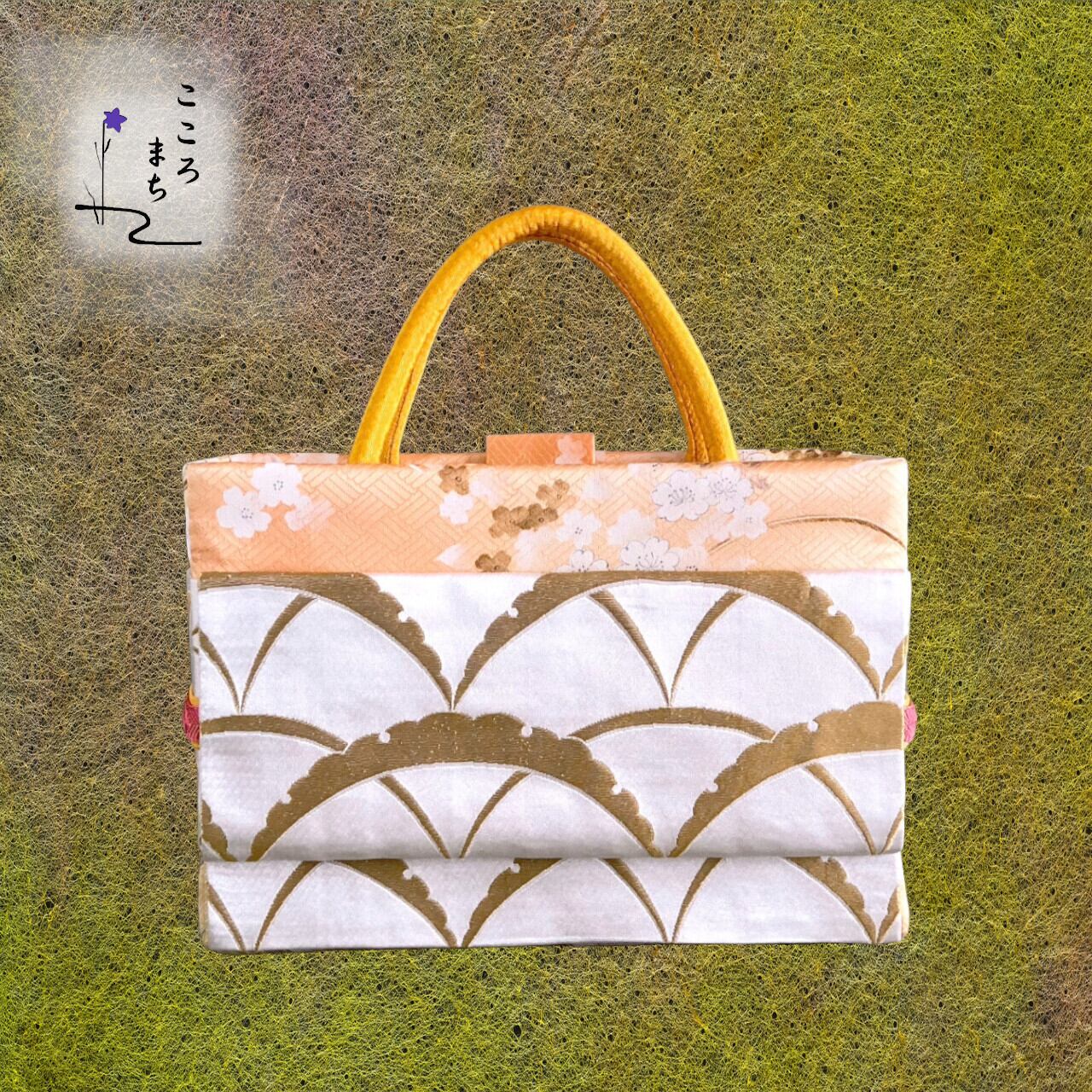 こころまち 正絹飾りかばん・着物バッグ 舞桜 type-A NoBLA90 橙・白