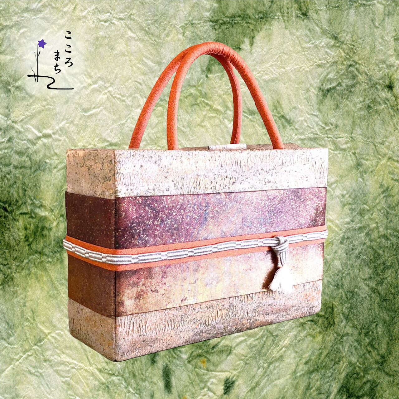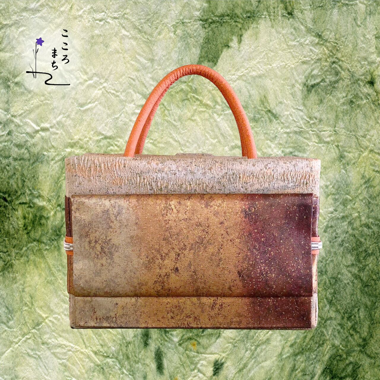 こころまち 正絹飾りかばん・着物バッグ 作家物 type-A NoCIA110 茶系