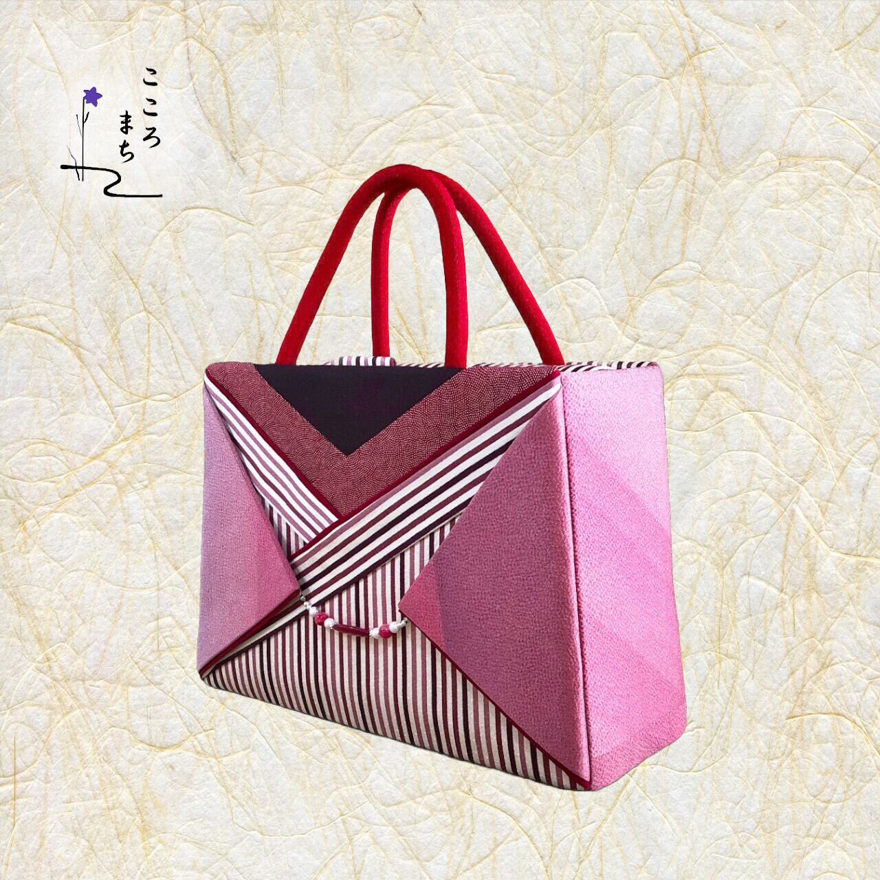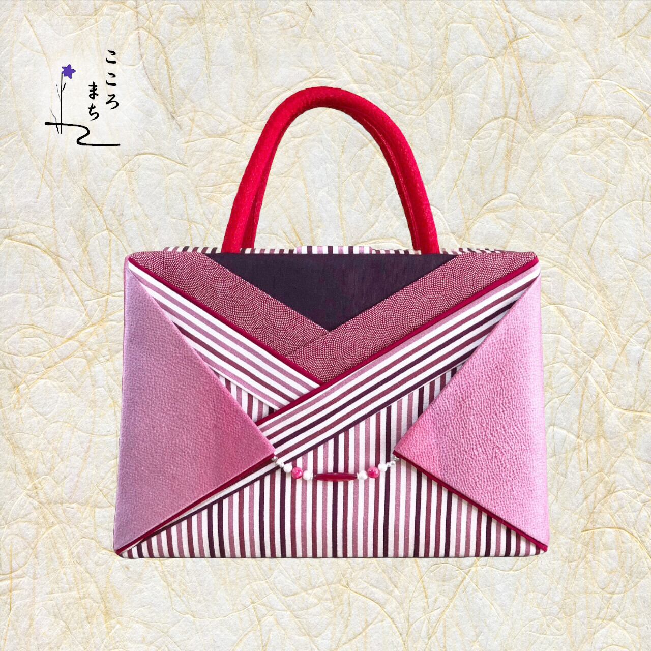 こころまち 飾りかばんは、伝統的な正絹や絹の着物を使用しリメイクしたバッグです。