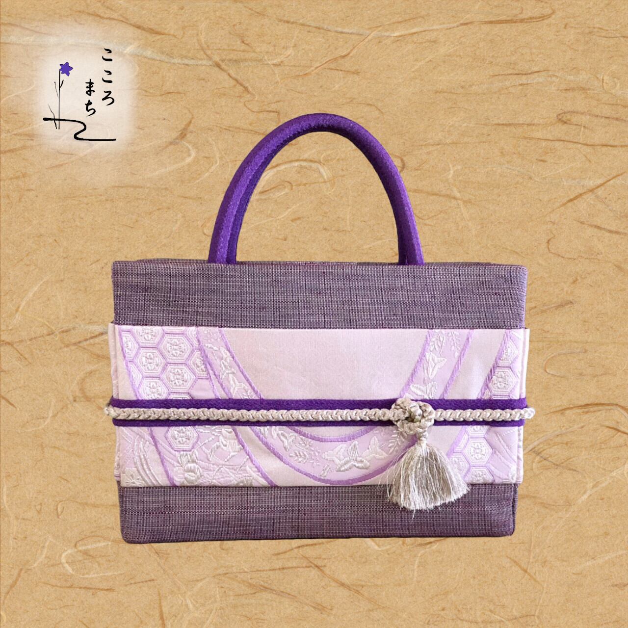 こころまち 正絹飾りかばん・着物バッグ 紬 type-A NoBHA74 紫