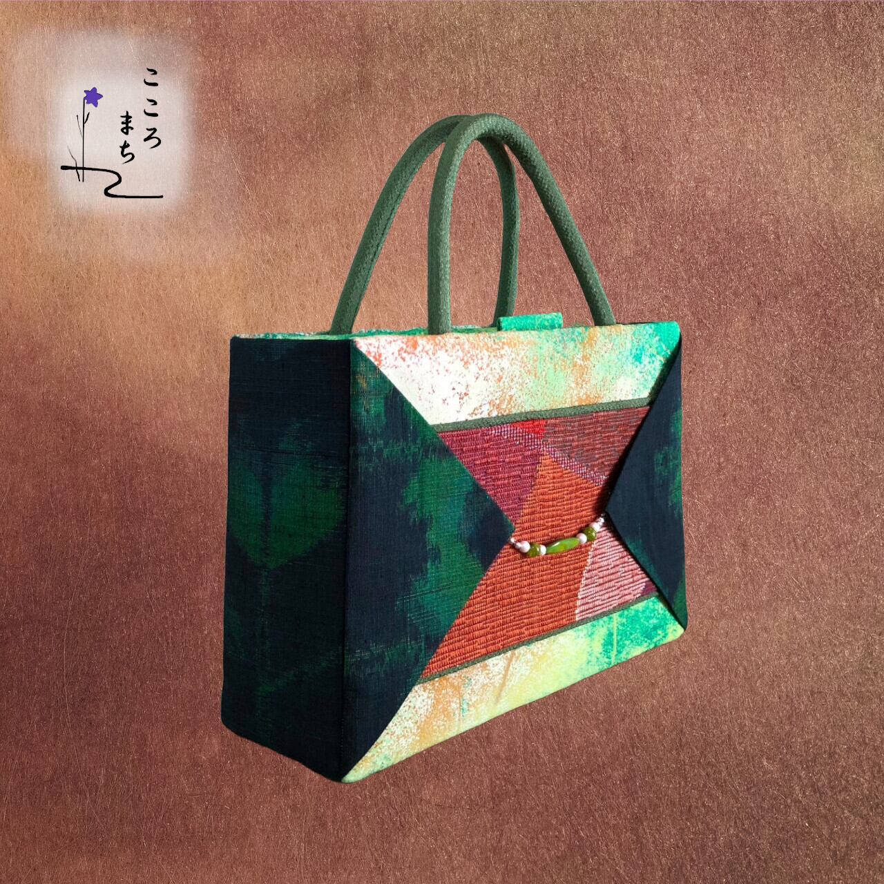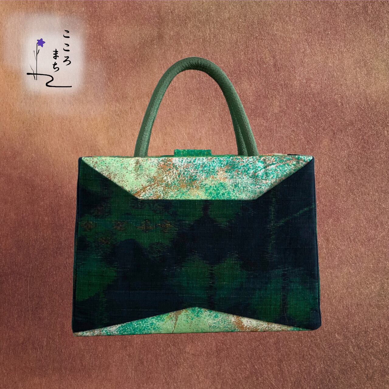こころまち 正絹飾りかばん・着物バッグ 天然石 紬 type-C NoCCC93 緑