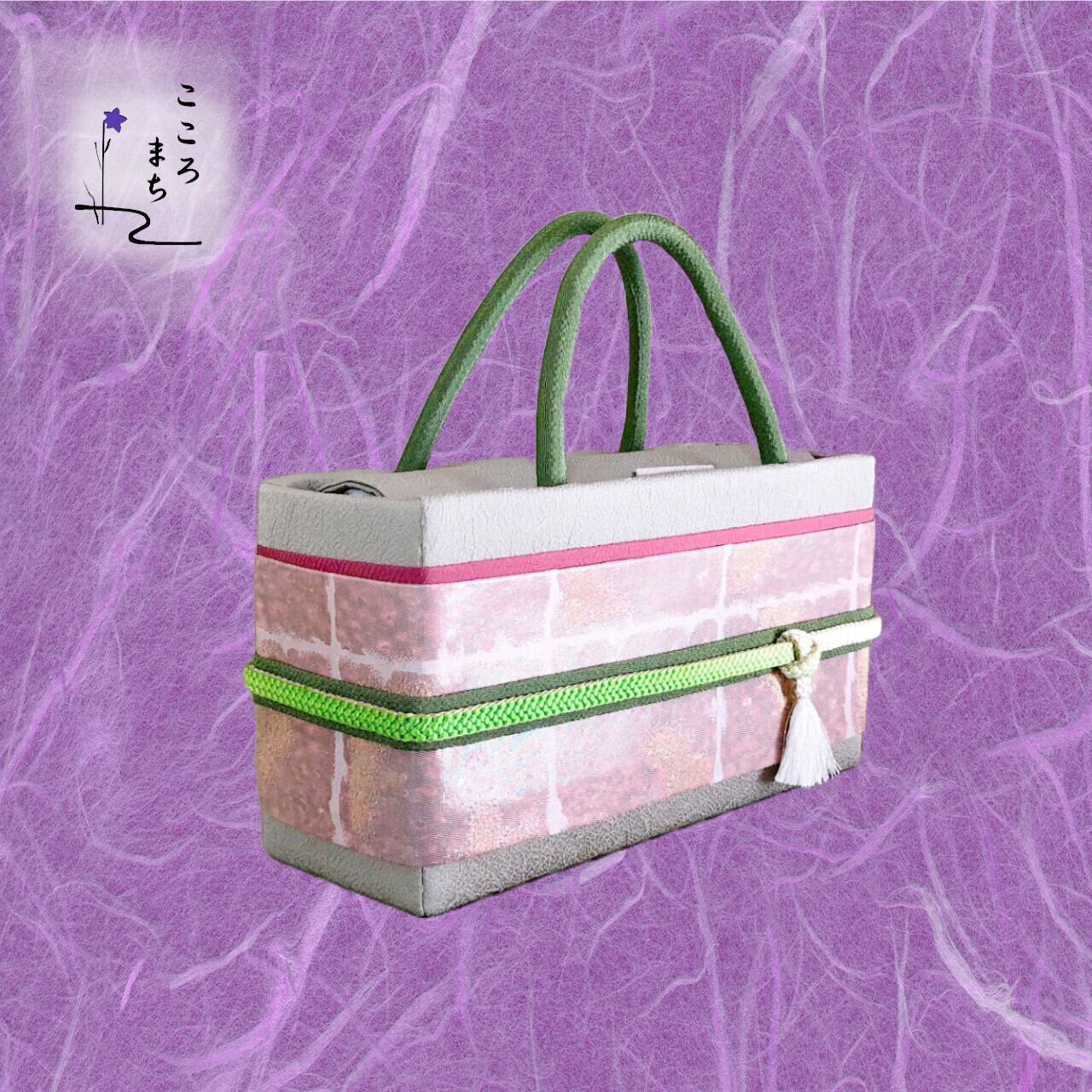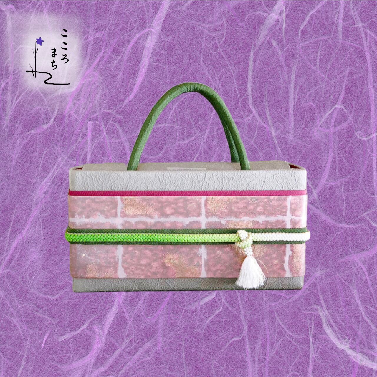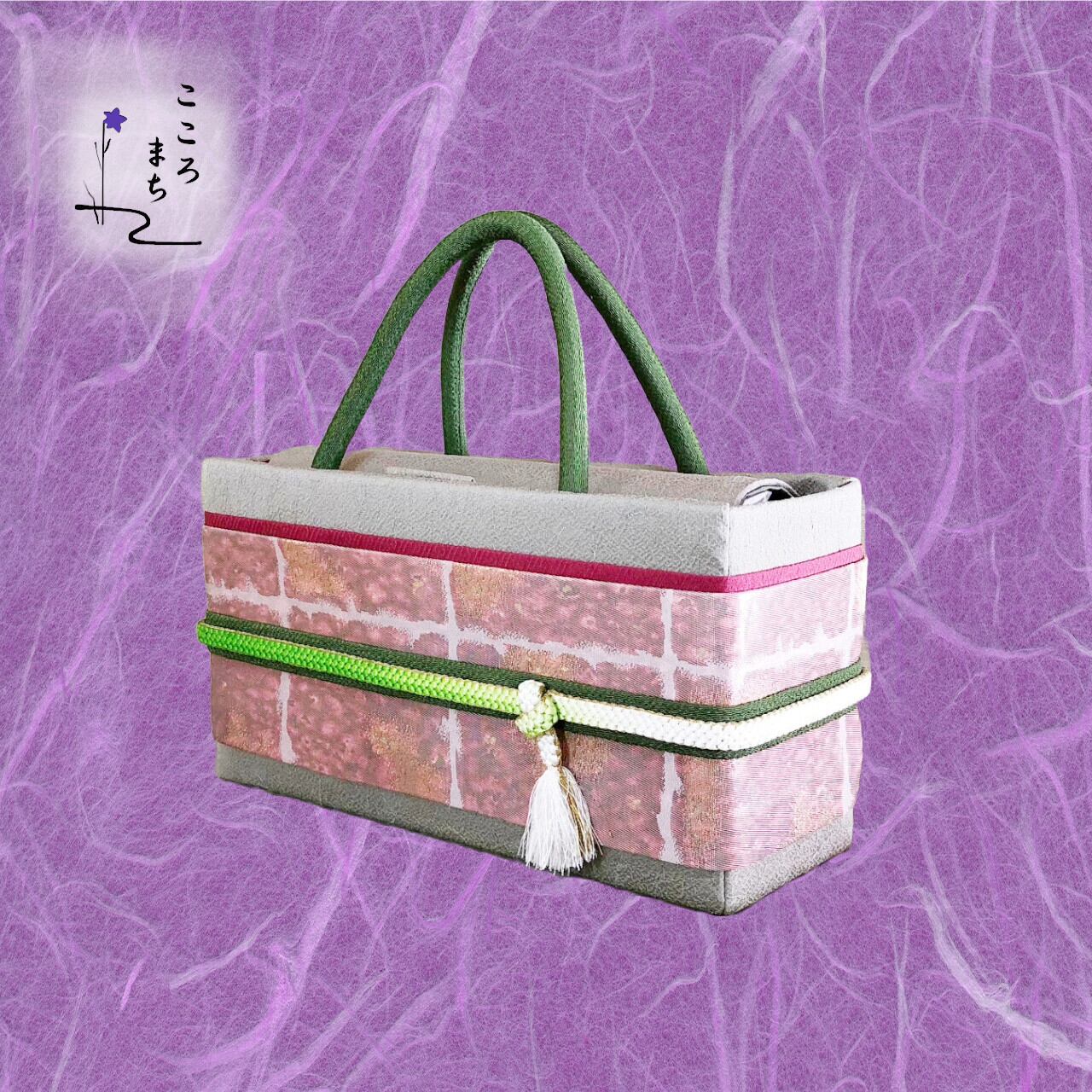 こころまち 正絹飾りかばん・着物バッグ 草木染 金糸 type-AA NoDCAA117 緑・ピンク