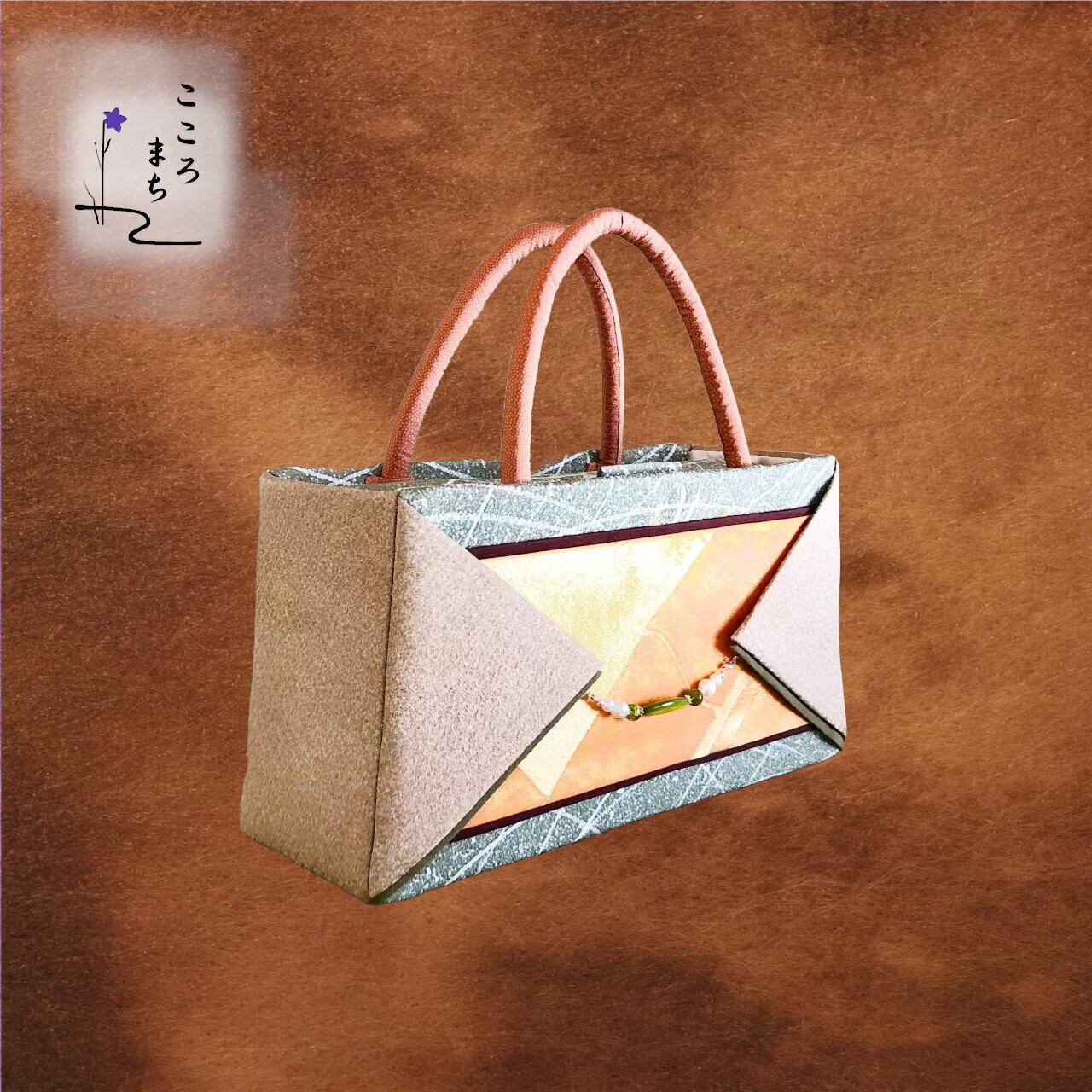 こころまち 正絹飾りかばん・着物バッグ 天然石 type-CC NoDECC120 緑・茶系