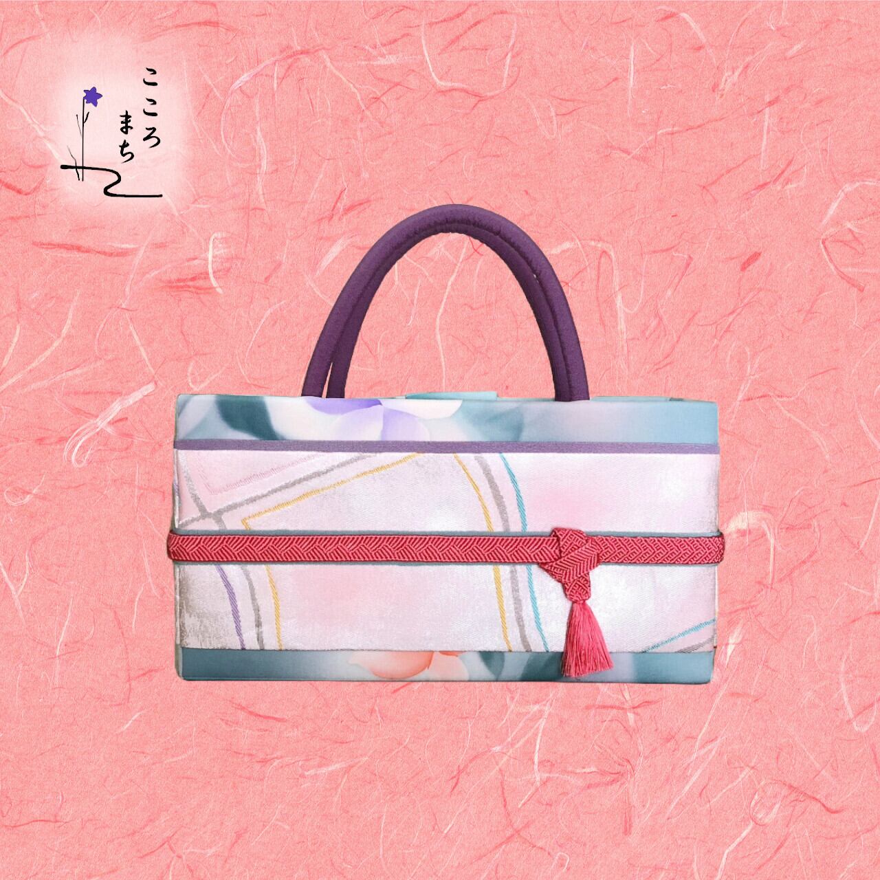 こころまち 飾りかばんは、伝統的な正絹や絹の着物を使用しリメイクしたバッグです。