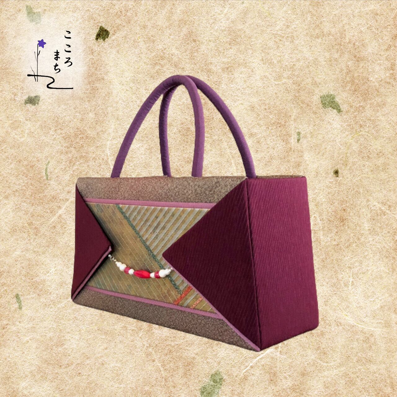 こころまち 飾りかばんは、伝統的な正絹や絹の着物を使用しリメイクしたバッグです。