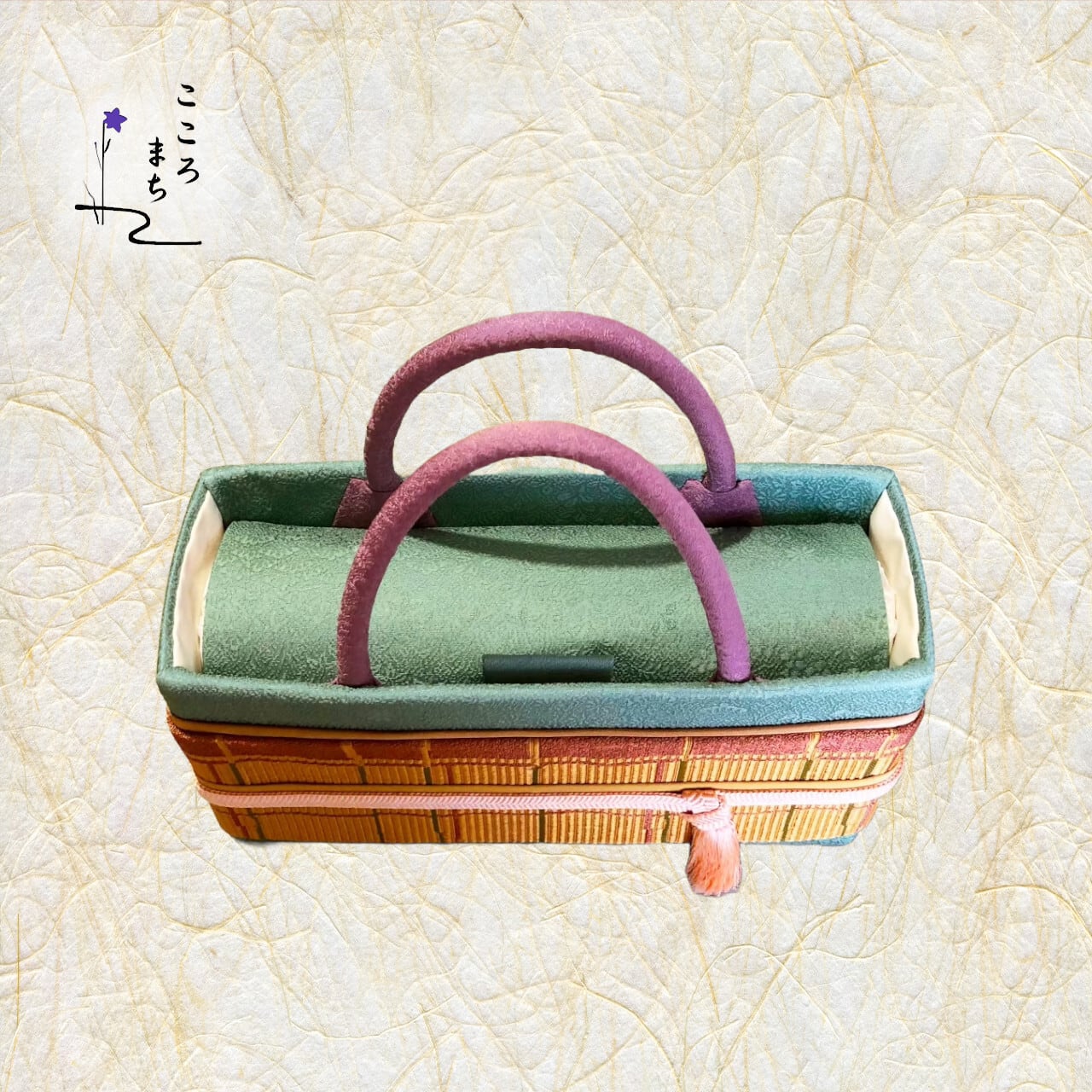 こころまち 飾りかばんは、伝統的な正絹や絹の着物を使用しリメイクしたバッグです。